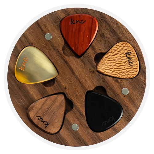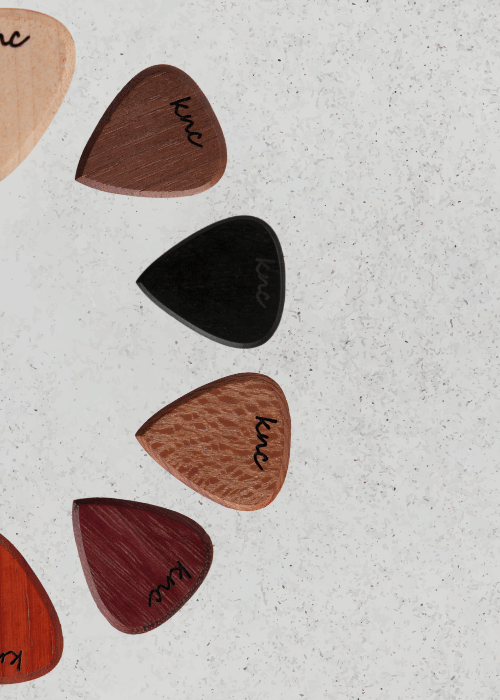 With Knc Picks, you can design your personal pick and add different tones to your music with picks made of wooden picks or other organic materials.