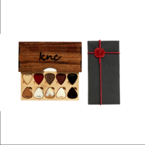 Our products, which are handmade with precision craftsmanship that you will acquire with personalized guitar pick designs, are just for you! We blend this set with 10 different materials and a nice wooden box and carefully prepare it with a special Knc Picks seal. Plastic picks are widely used today. Instead of using such a pick, you can be sure that using handmade and completely organic picks will not only reduce our carbon footprint, but will also completely change your tone.