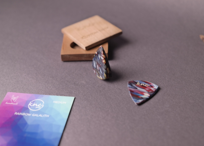 With precision handcrafted KNC picks, you can design your pick individually. Our completely eco-friendly products are produced with recycled materials.